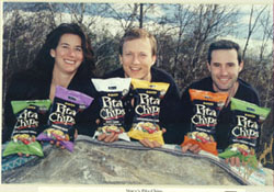 From left to right: Stacy Andrus, Mark Andrus, and David. Co-founder of Stacy's Pita Chip Company.