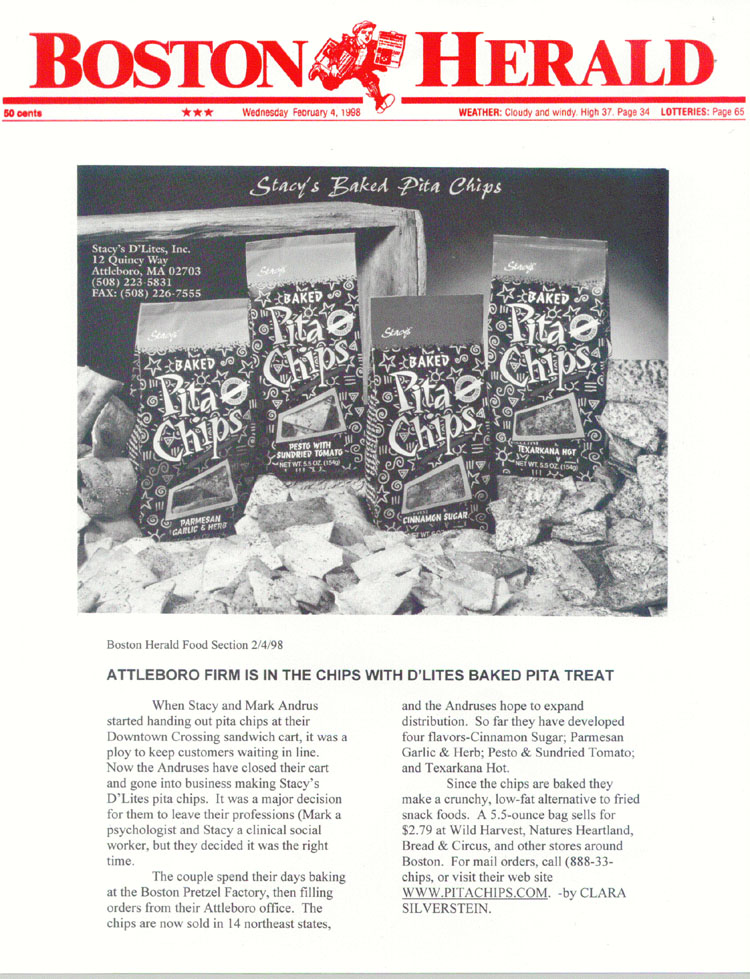 Please contact our Webmaster with questions or comments. © Copyright 1999 Stacy's Pita Chip Company, Inc. All rights reserved.